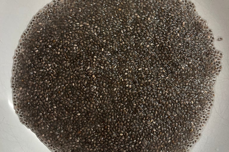 Do not use too much water. I try to just have enough to cover all the chia seeds. They will start to form a jelly-like texture. See picture below.